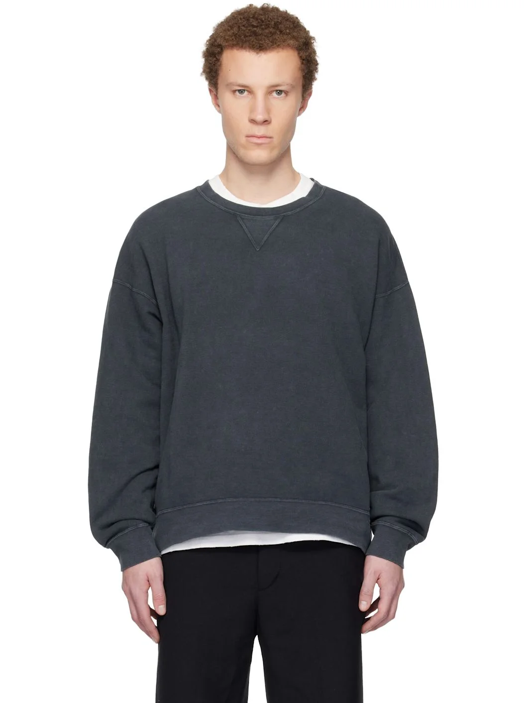 Garment-dyed cotton-blend fleece sweatshirt. · Loose-fit · Fading throughout · Rib-knit crewneck, hem, and cuffs · Dropped shoulders Supplier color: Black 95% cotton, 5% nylon. Made in Japan 261487M204013