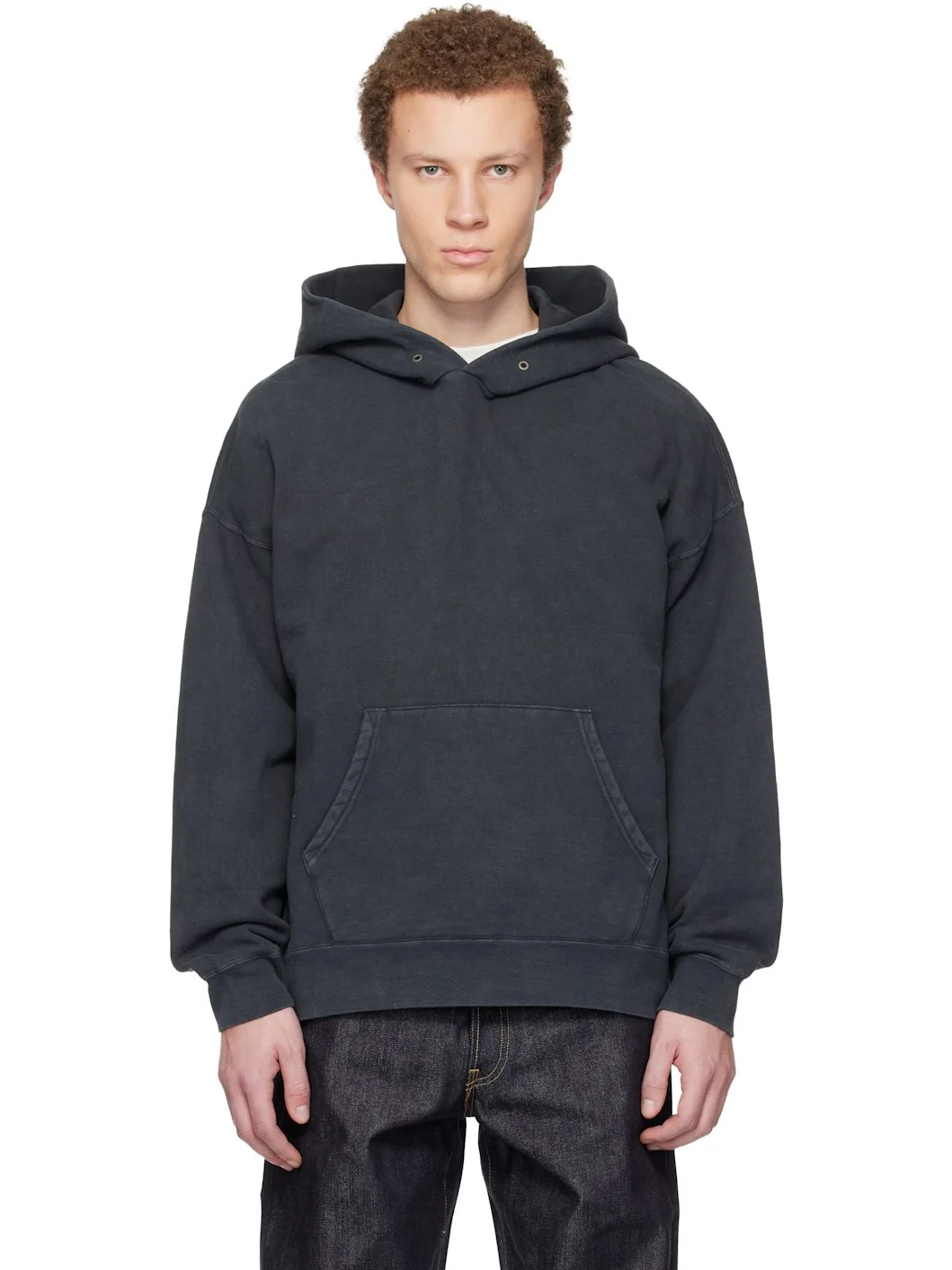 Garment-dyed cotton-blend fleece hoodie. · Loose-fit · Fading throughout · Metal eyelets at hood · Kangaroo pocket at waist · Rib-knit hem and cuffs · Dropped shoulders Supplier color: Black 95% cotton, 5% nylon. Made in Japan 261487M202008