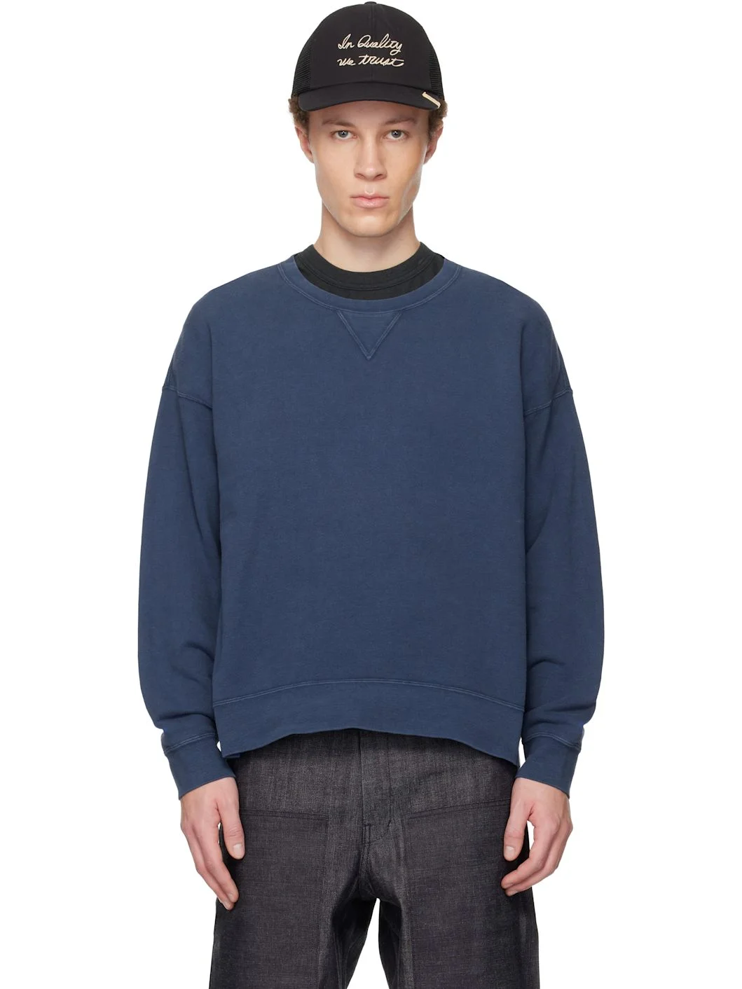 Cotton-blend French terry sweatshirt. · Garment-dyed · Rib-knit crewneck, hem, and cuffs · Dropped shoulders Supplier color: Navy 95% cotton, 5% nylon. Made in Japan 261487M204015