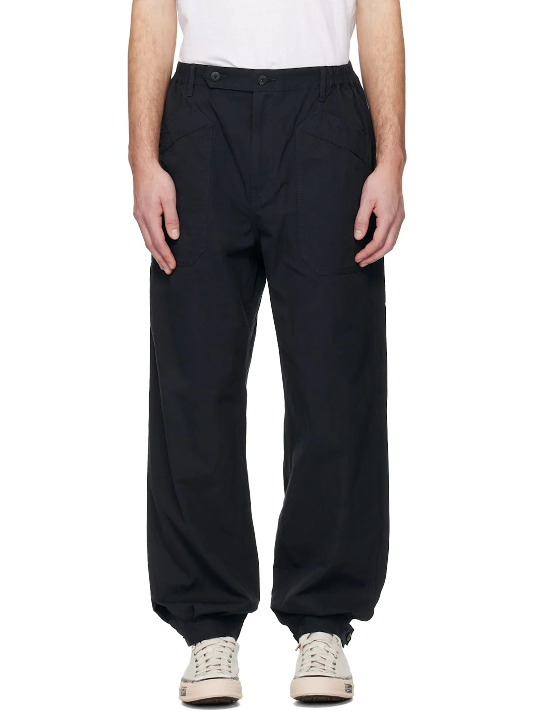 Cotton twill trousers. · Belt loops at partially elasticized waistband · Four-pocket styling · Zip fly · Pleats and adjustable button fastening at cuffs · Horn hardware Supplier color: Navy 100% cotton. Made in Japan 261487M191015