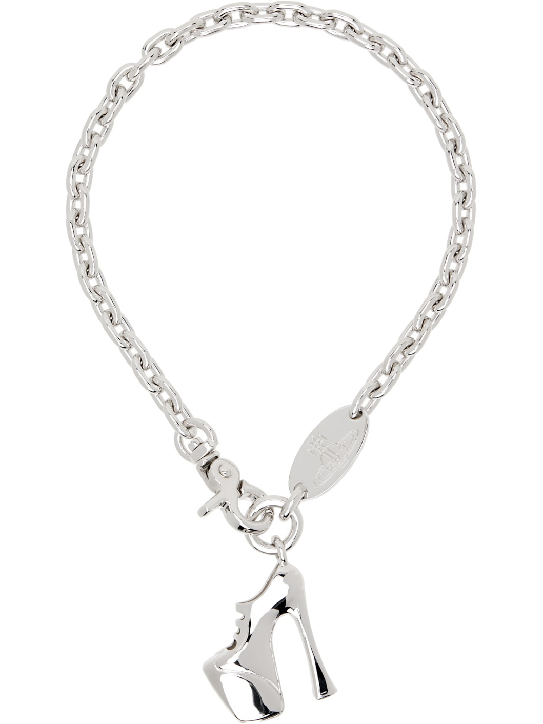 Cable chain necklace in silver-tone brass. · Charm and logo plaque at length · Lobster-clasp fastening · L16.5" Supplier color: Platinum Brass. Made in Thailand 251314F023026