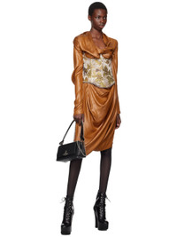 Lightweight fabric-dyed polyester chintz long sleeve dress. Gathering throughout. · Asymmetric neckline · Concealed zip closure at side seam · Unlined Supplier color: Cognac 100% polyester. Made in Italy 242314F054015
