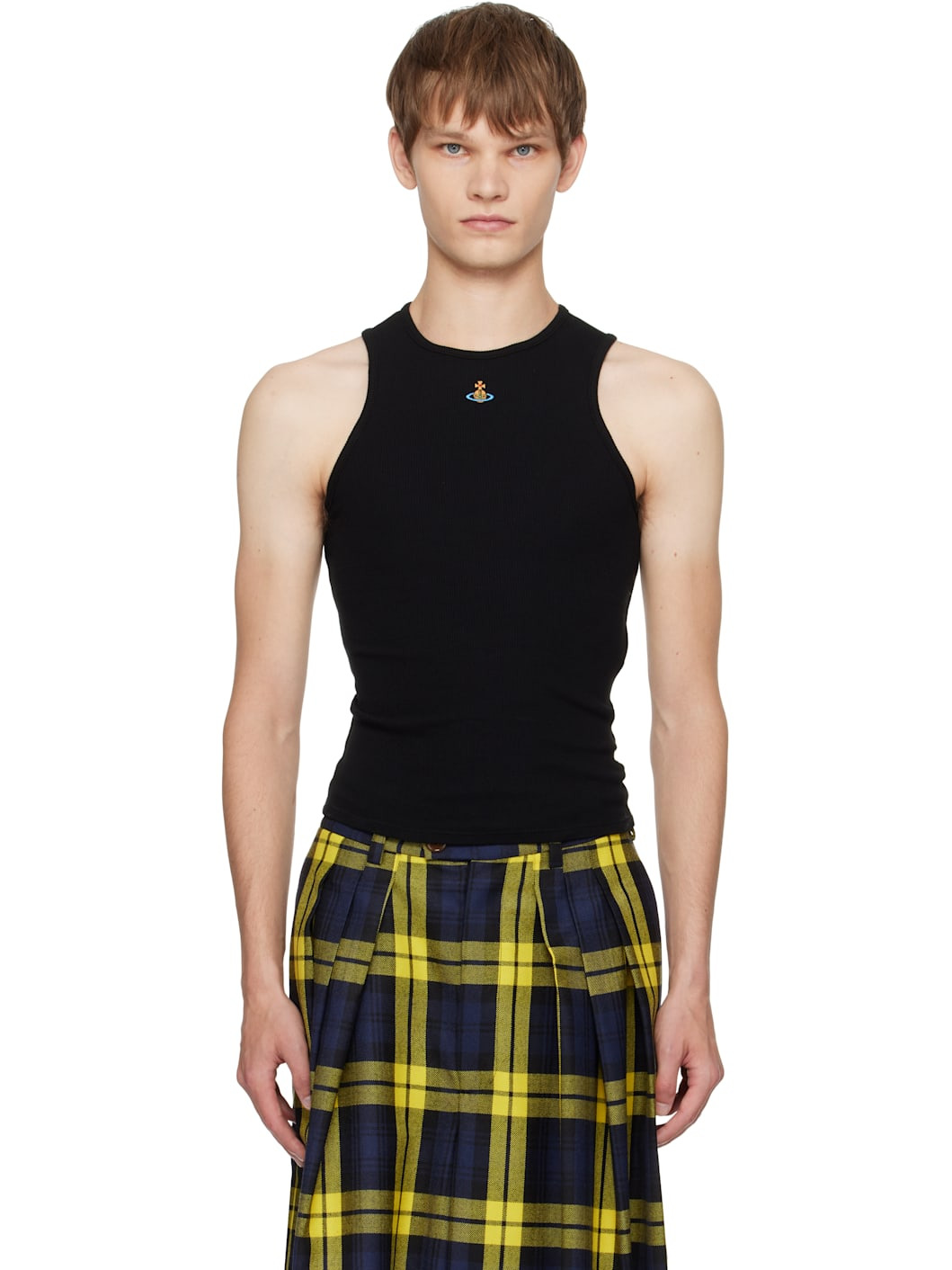 Ribbed stretch cotton jersey tank top. · Crewneck · Logo embroidered at chest Supplier color: Black 95% cotton, 5% elastane. Made in Tunisia 252314M214002