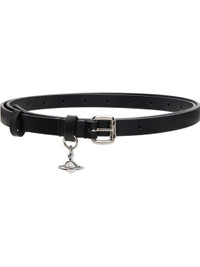 Wraparound buffed leather belt. · Keeper loops · Logo charm with crystal at keeper loop · Logo-engraved pin-buckle fastening · Silver-tone hardware · W0.75" Supplier color: Black Leather. Made in Italy 252314M131003