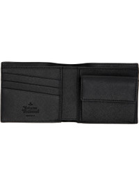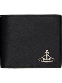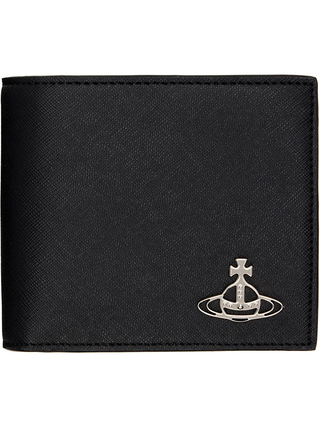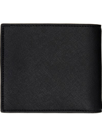 Saffiano faux-leather bifold wallet. · Logo hardware at face · Three card slots and two patch pockets at interior · One note slot and coin pouch · Twill lining · Silver-tone hardware · H4" x W4.25" x D1.25" Supplier color: Black Synthetic. Made in Italy 252314M164008
