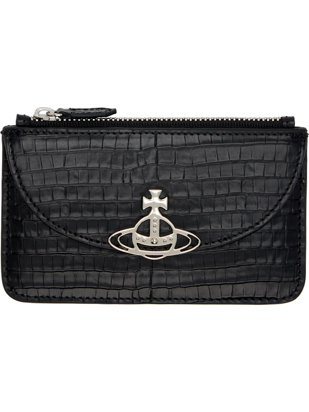 Black Half Moon Croc-Embossed Card Holder