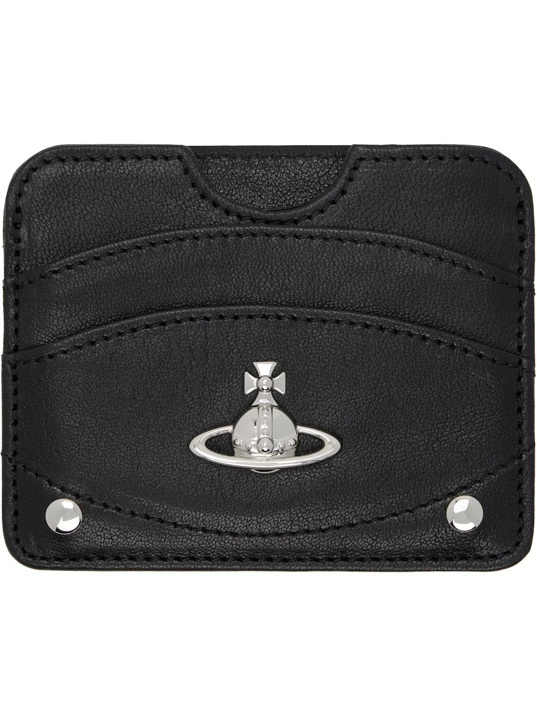 Grained sheepskin card holder. · Logo hardware and rivets at face · Two card slots · Central note slot · Twill lining · Silver-tone hardware · H3.25" x W4" Supplier color: Black Sheepskin. Made in Italy 252314M163051