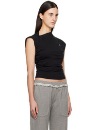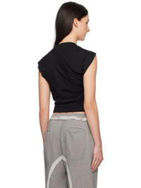 Organic cotton jersey T-shirt. Draping throughout. · Asymmetrical construction · Boat neck · Logo embroidered at chest · Cap sleeves Supplier color: Black 100% cotton. Made in Tunisia 251314F110018