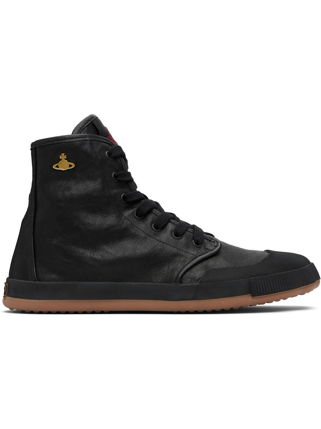 High-top grained sheepskin sneakers. · Textured rubber cap at modified toe · Lace-up closure · Embroidered logo patch at tongue · Logo hardware at outer side · Rubberized logo patch at heel · Treaded rubber sole Supplier color: Black Upper: sheepskin. Sole: rubber. Made in Portugal 251314M236004