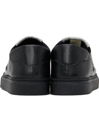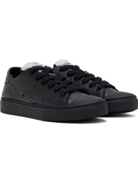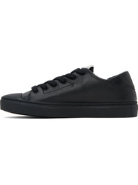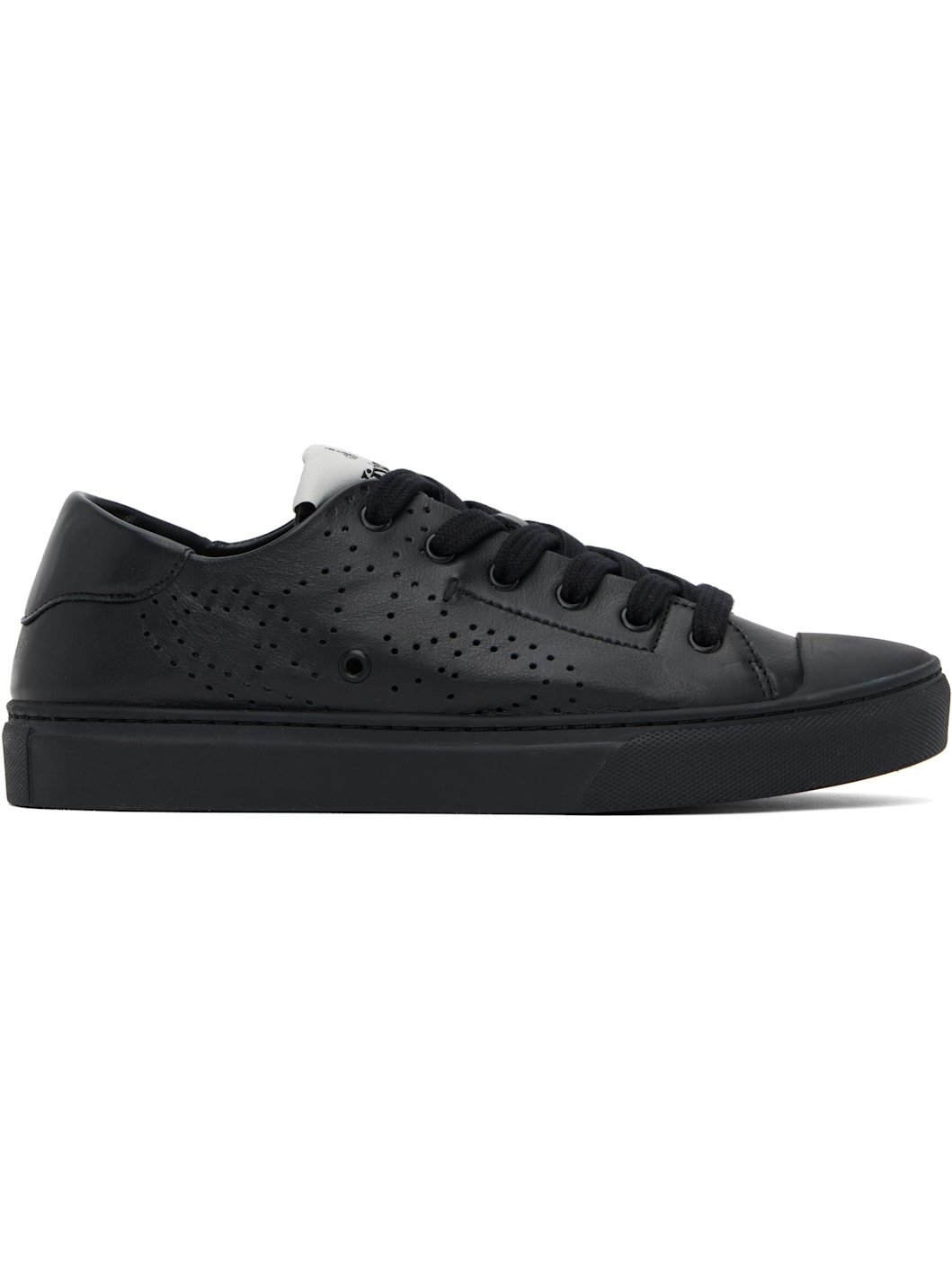 Low-top buffed leather sneakers in black. · Rubber cap toe · Lace-up closure · Logo patch at tongue · Perforated logo graphic and eyelet at outer side · Buffed leather lining · Treaded rubber sole Supplier color: Black Upper: leather. Sole: rubber. Made in Portugal 251314M237006