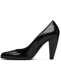 Polished leather heels. · Modified square toe · Grosgrain trim at collar · Buffed leather lining · Covered block heel with rubber injection · Leather sole · Heel: H3.75" Supplier color: Black Leather. Made in Italy 252314F122000