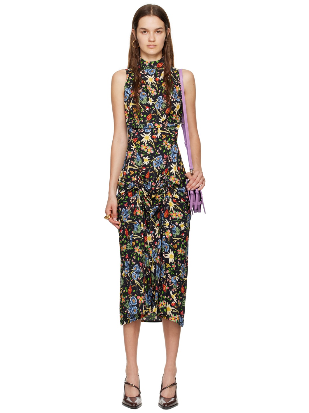 Plain-woven FSC-certified viscose dress. Floral logo pattern printed throughout. · Mock neck · Draping and self-tie straps at front · Concealed zip closure at back · Unlined Supplier color: Folk flower 100% viscose. Made in Italy 241314F054016