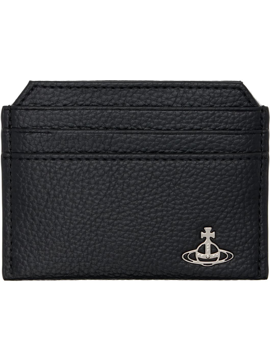 Pebble-grained leather card holder. · Logo hardware at face · Six card slots · Central note slot · Twill lining · Silver-tone hardware · H3" x W4" Supplier color: Black Leather. Made in Italy 252314M163013