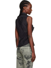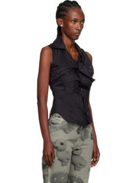Plain-woven cotton- and silk-blend shirt. · Lightweight and semi-sheer · Gathering throughout · Asymmetrical construction · Modified spread collar · Button closure · Embroidered logo at chest · Mother-of-pearl hardware Supplier color: Black Body: 70% cotton, 30% silk. Trim: 70% viscose, 30% polyester. Made in Romania 251314F109017