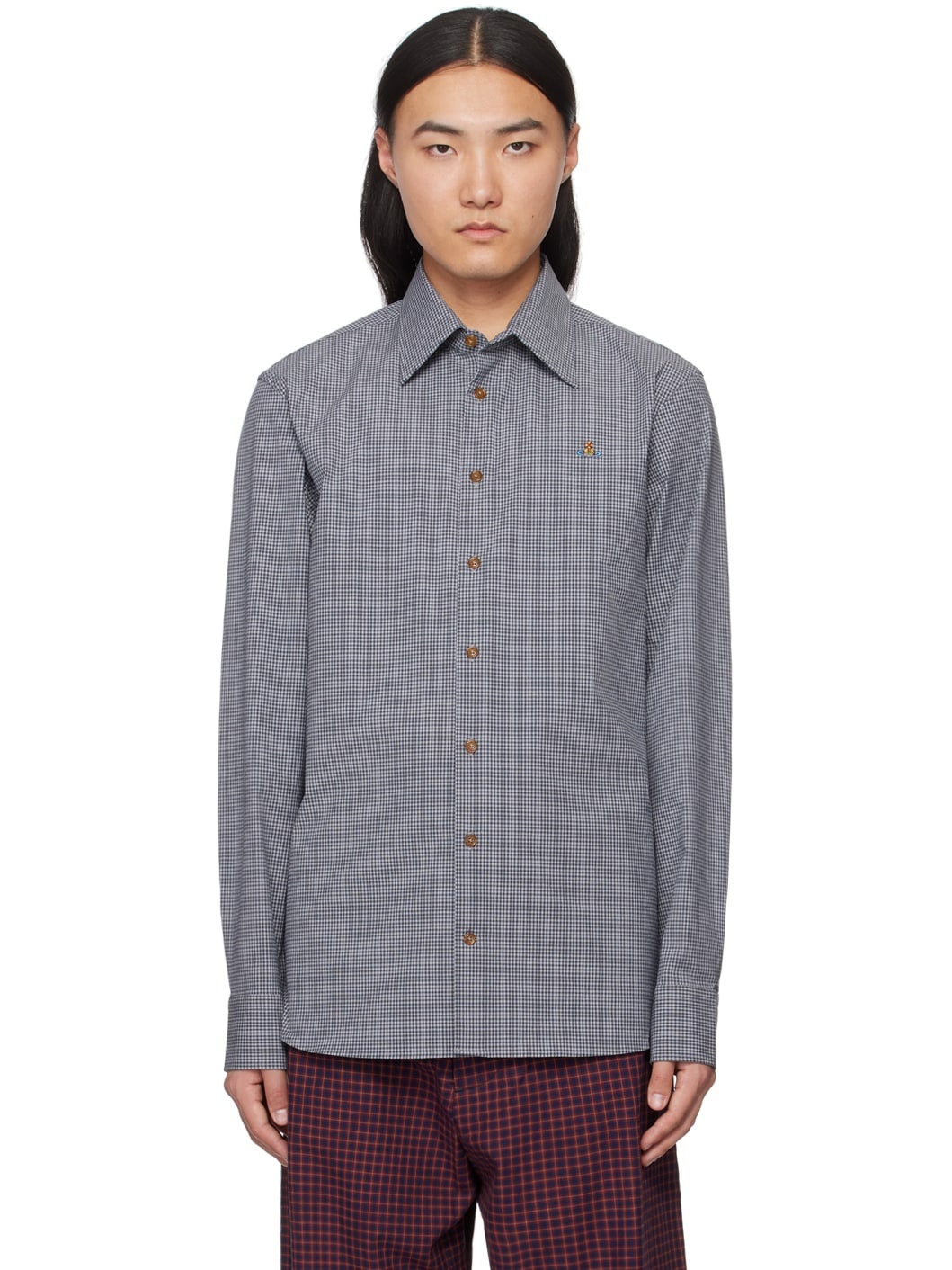 Stretch organic cotton poplin shirt. Check pattern throughout. · Spread collar · Button closure · Logo embroidered at chest · Shirttail hem · Two-button barrel cuffs Supplier color: Gingham 98% organic cotton, 2% elastane. Made in Turkey 241314M192015