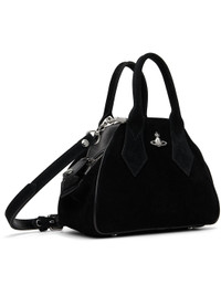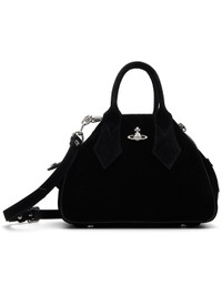 Calfskin suede top handle bag. · Grained calfskin trim throughout · Twin rolled carry handles · Adjustable and detachable crossbody strap · Logo hardware at face · Press-stud tab at sides · Bumper studs at base · Zip closure · Zip and patch pocket at interior · Canvas lining · Logo-engraved silver-tone hardware · H6" x W9" x D4" Supplier color: Black Calfskin. Made in Italy 252314F046044
