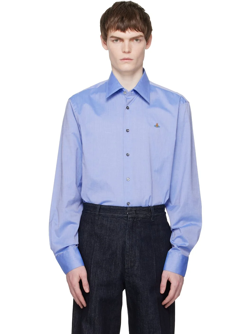 Plain-woven cotton shirt. · Spread collar · Button closure · Logo embroidered at chest · Shirttail hem · Buttoned barrel cuffs · Mother-of-pearl hardware Supplier color: Blue 100% cotton. Made in Turkey 261314M192032