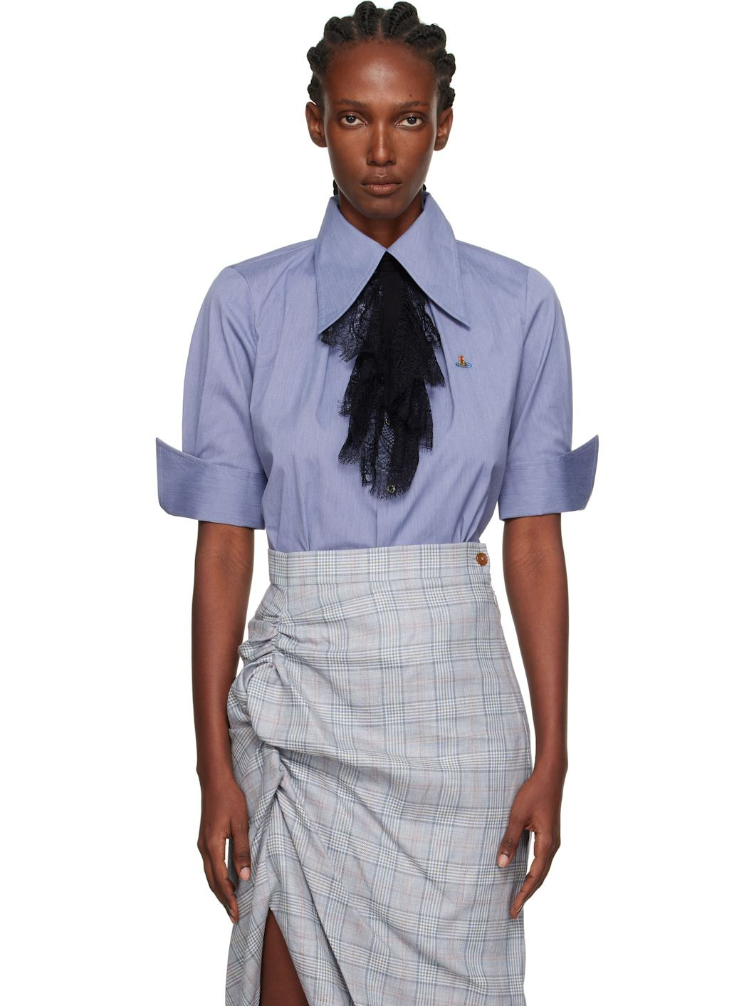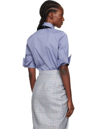 Plain-woven stretch cotton-blend shirt. · Pointed collar · Button closure · Logo embroidered at chest · Tucks at front · Darts at front and back · Shirttail hem · Adjustable button fastening at rolled cuffs · Logo-engraved mother-of-pearl hardware Supplier color: Blue Body: 69% cotton, 28% polyamide, 3% elastane. Trim: 70% viscose, 30% polyester. Made in Romania 251314F109020