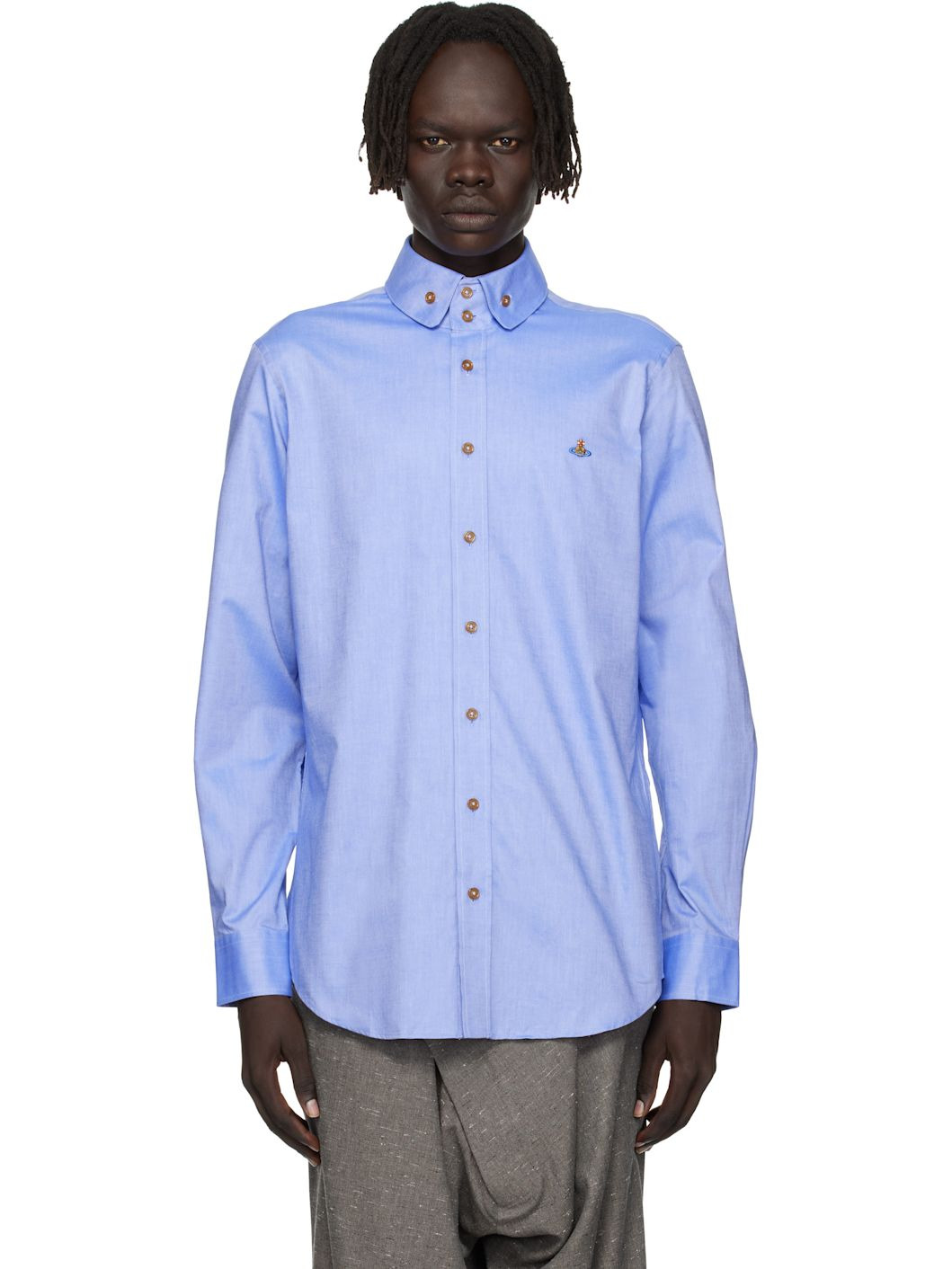 Organic cotton oxford cloth shirt. · Button-down spread collar · Button closure · Logo embroidered at chest · Shirttail hem · Pleats at single-button barrel cuffs · Twin pleats at back yoke Supplier color: Blue 100% cotton. Made in Turkey 252314M192000