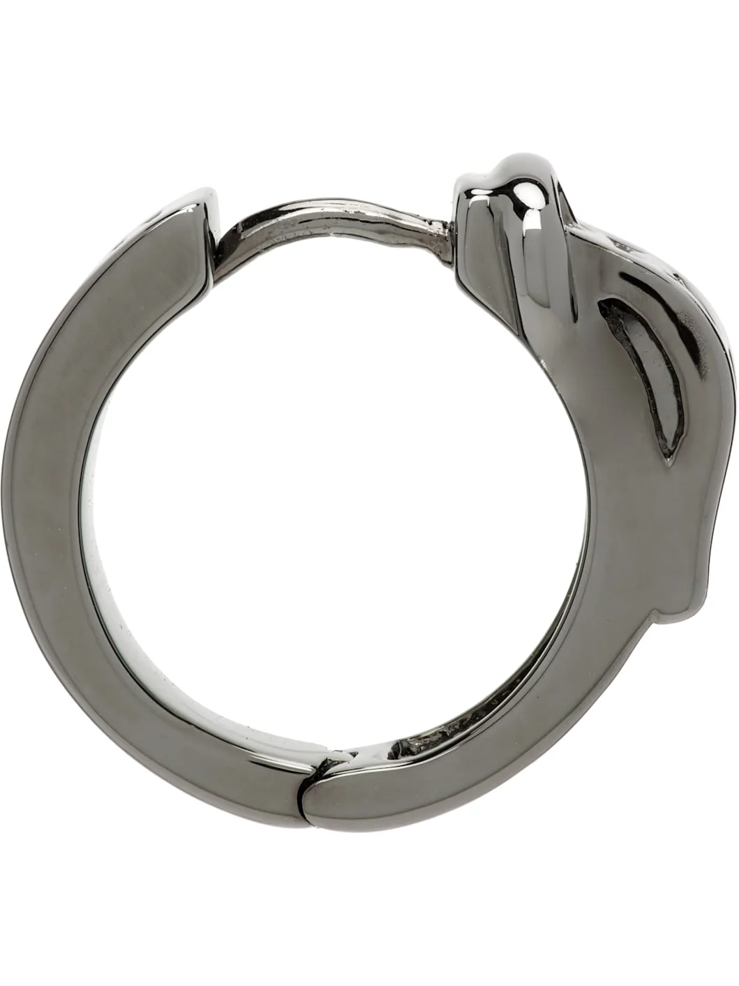 Single hoop earring in gunmetal-tone brass. · Logo engraved throughout · Hinged-post fastening · D0.75" Supplier color: Ruthenium Brass. Made in Thailand 261314M144042