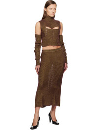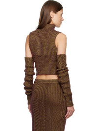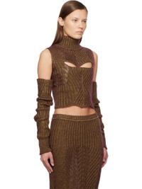 Rib-knit stretch silk- and mohair-blend top. · Cable knitting throughout · Layered construction · Turtleneck · Cutout at chest · Integrated corset-style boned underlay Supplier color: Gold Body: 66% silk, 27% mohair, 6% polyamide, 1% elastane. Body 2: 100% cotton. Trim: 85% polyamide, 15% elastane. Made in Italy 252314F111020