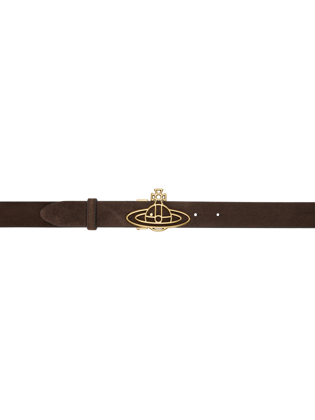 Suede belt in brown. · Logo hardware at post-stud fastening · Grained leather lining · Gold-tone hardware · W1.25" Supplier color: Brown