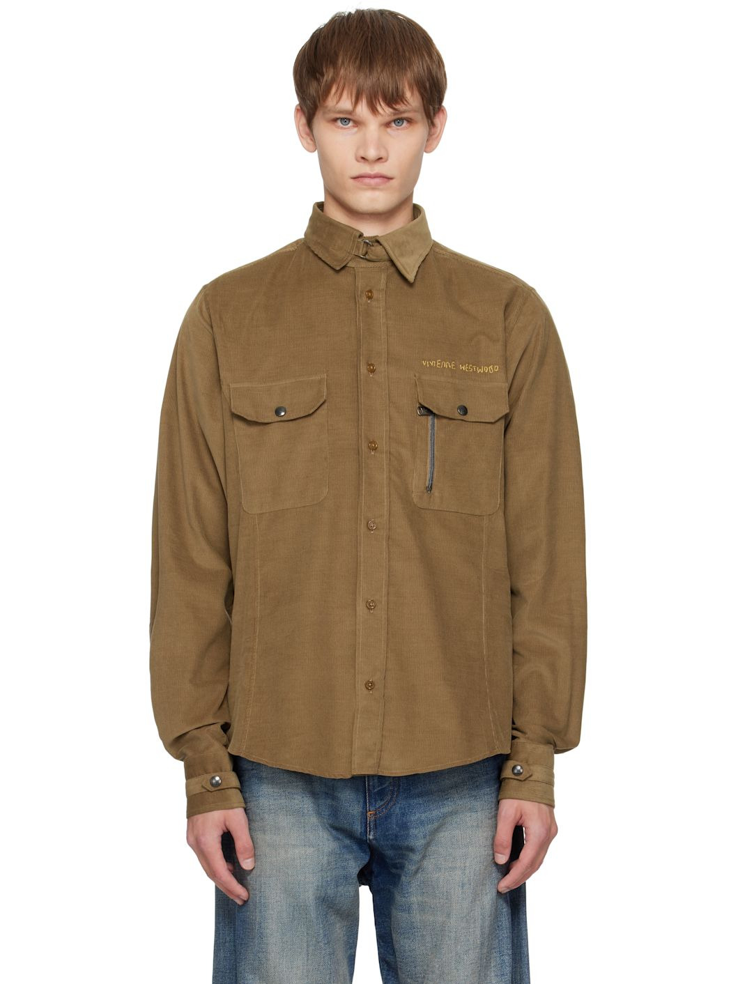 Organic cotton corduroy shirt. · Cinch strap at spread collar and cuffs · Button closure · Logo embroidered at chest · Flap pockets and zip pocket at chest · Shirttail hem · Press-stud barrel cuffs Supplier color: Tobacco 100% cotton. Made in Romania 252314M192006