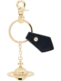 Keychain in gold-tone. · Logo charm at drop · Grained faux-leather logo tab · Key ring and lobster-clasp fastening · Logo-engraved gold-tone hardware · H6" x W2" x D2" Supplier color: Black PU grain Iron, synthetic. Made in Italy 252314M148006