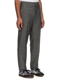 4sustainability®- and ZDHC-certified virgin wool delaine trousers. Stripes throughout. · Belt loops · Three-pocket styling · Button-fly · Creased legs · Partial logo-woven satin lining Supplier color: Black/White Body: 100% virgin wool. Lining 1: 100% cotton. Lining 2: 100% viscose. Made in Italy 232314M191023