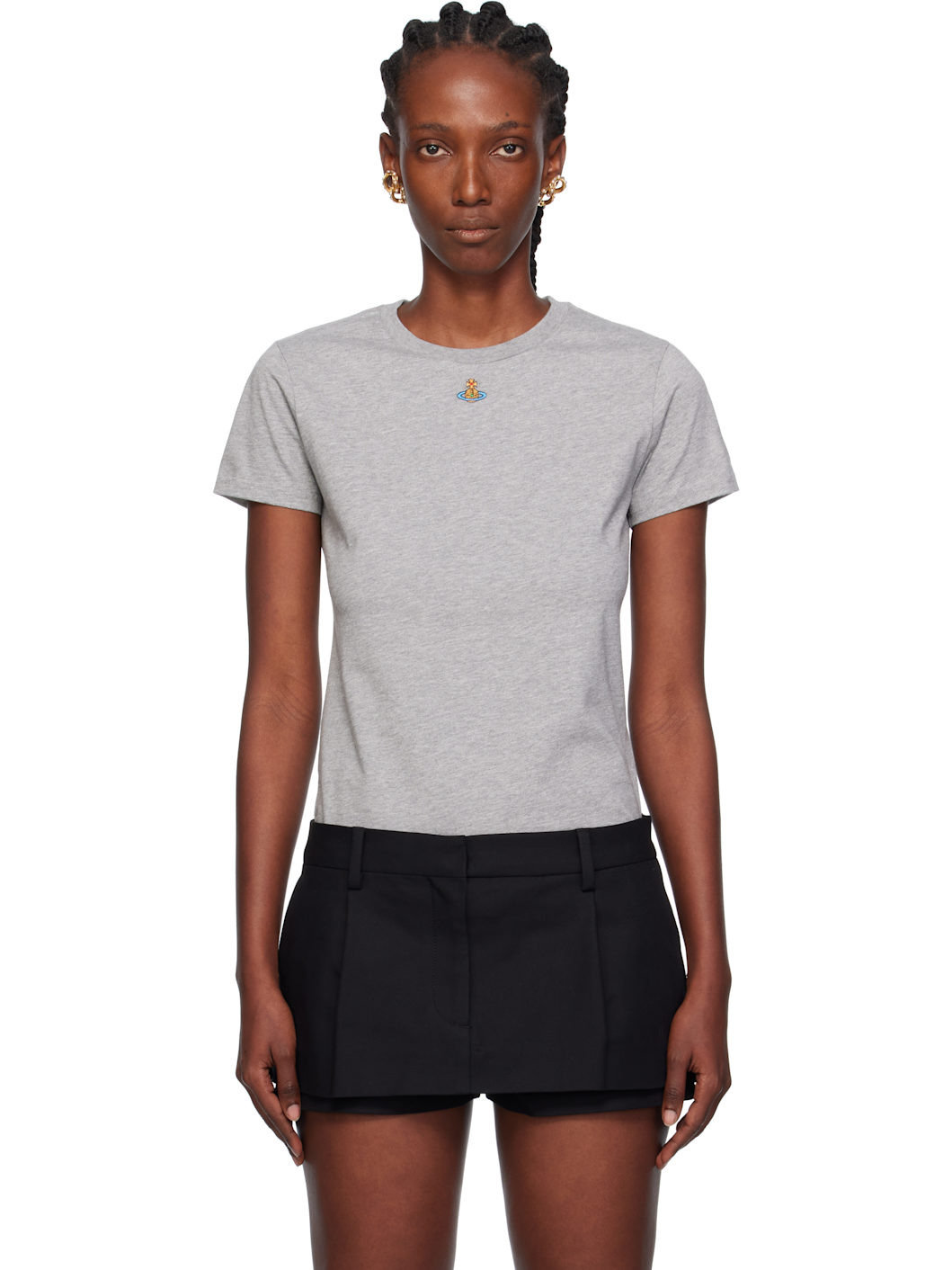 Cotton jersey T-shirt. · Rib-knit crewneck · Embroidered logo at chest · Tennis-tail hem Supplier color: Grey melange Body: 100% cotton. Trim: 98% cotton, 2% elastane. Made in Tunisia 252314F110004