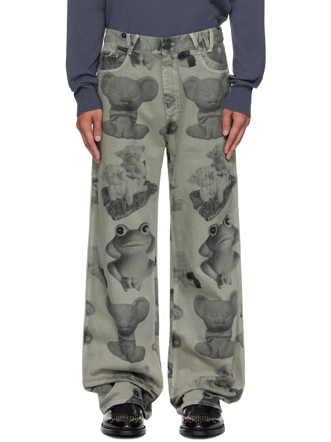 Lightweight non-stretch denim jeans. · Graphic pattern printed throughout · Mid-rise · Belt loops · Logo belt loops at front · Five-pocket styling · Zip fly · Piping at side seams · Embroidered logo at back pocket Supplier color: Green dyed figurine 100% cotton. Made in Italy 251314M186006