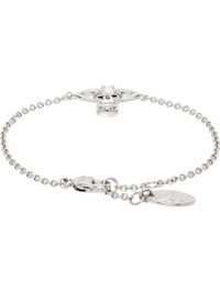 Cable chain bracelet in silver-tone brass. · Logo with crystals at face · Logo plaque at lobster-clasp fastening · L6.75" Supplier color: Platinum/White cz Brass, crystal. Made in Thailand 252314M142027