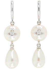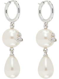 Pair of hoop earrings in silver-tone brass. · Faux pearls with logo at drop · Hinged post fastening · H2" x W0.9" Supplier color: Platinum/Creamrose Brass, resin. Made in Thailand 252314F022012