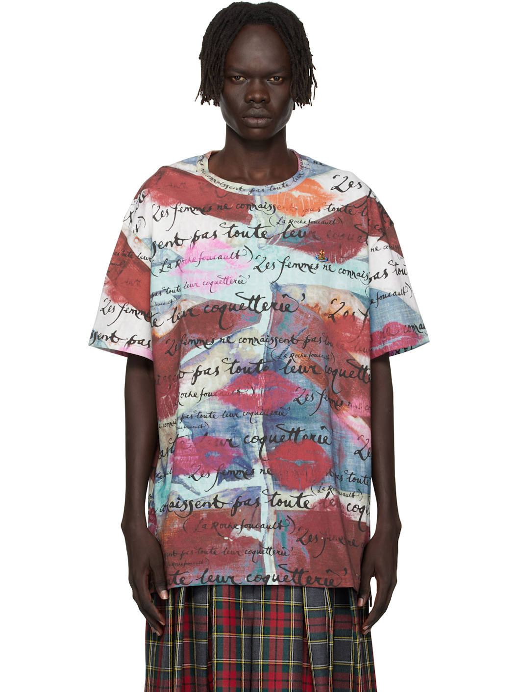 Organic cotton jersey T-shirt. · Text and graphic pattern printed throughout · Rib-knit crewneck · Vented side seams · Dropped shoulders Supplier color: Union jack/Kiss Body: 100% cotton. Trim: 95% cotton, 5% elastane. Made in Tunisia 252314M213013