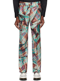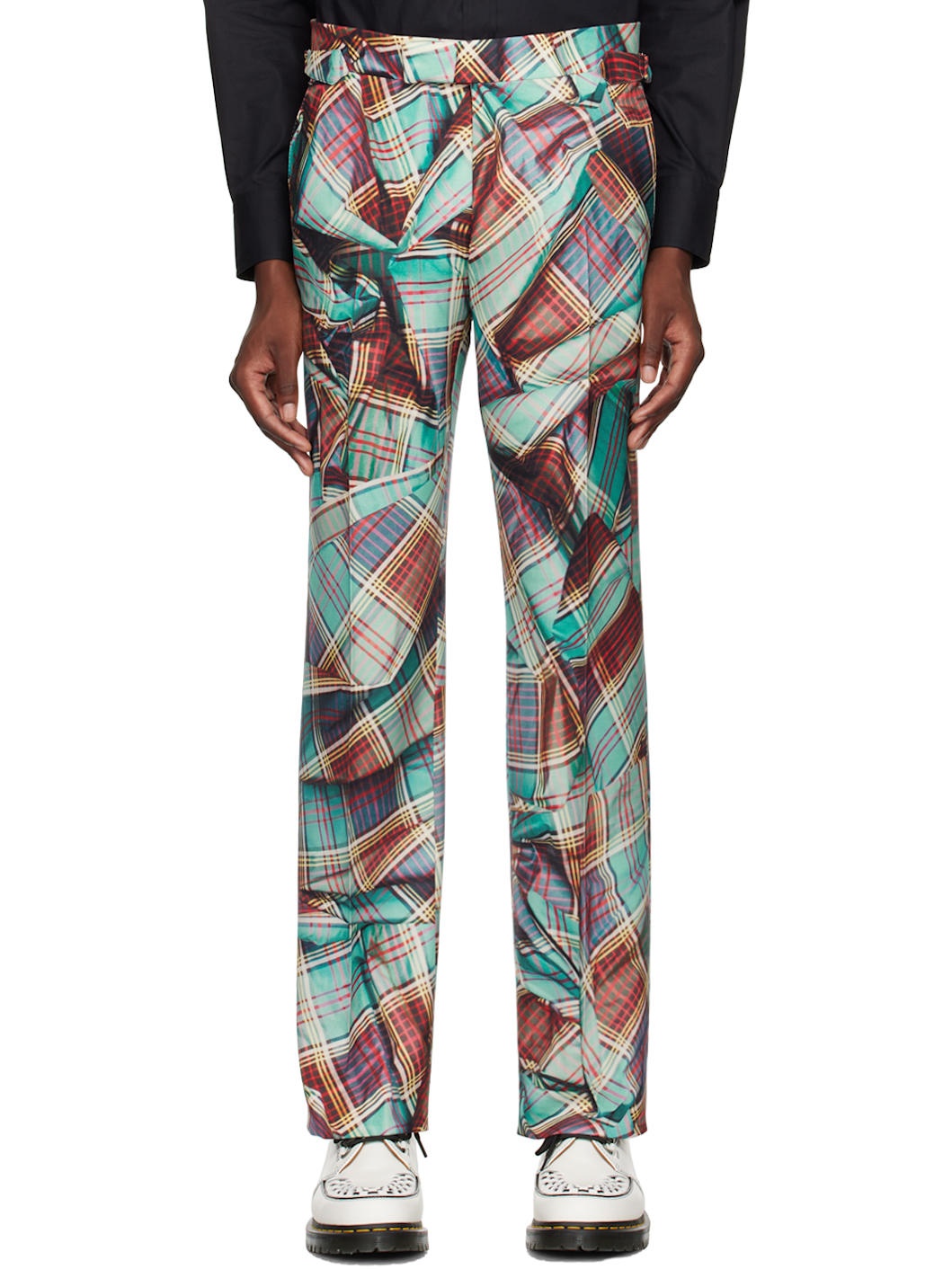 Straight-leg virgin wool twill trousers. Trompe-l'œil graphic check pattern throughout. · Mid-rise · Cinch tabs at waistband · Three-pocket styling · Zip-fly · Creased legs · Unfinished hem · Darts at back waistband Supplier color: Multi tartan Body: 100% virgin wool. Lining 1: 100% viscose. Lining 2: 100% cotton. Made in Italy 242314M191023