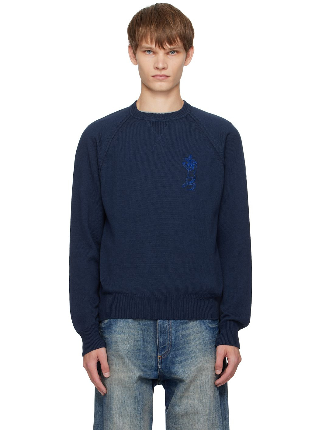 Knit organic cotton- and cashmere-blend sweater. · Rib-knit crewneck, hem, and cuffs · Logo graphic embroidered at chest · Raglan sleeves Supplier color: Navy 85% cotton, 15% cashmere. Made in Italy 252314M201005