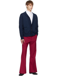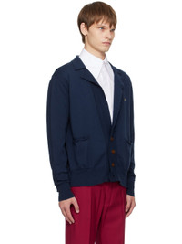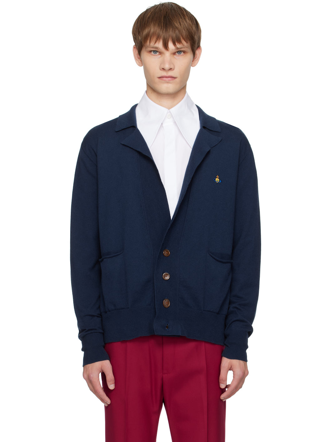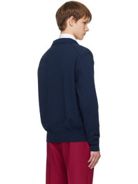 Knit organic cotton- and cashmere-blend cardigan. · Rib-knit open spread collar, hem, and cuffs · Button closure · Logo embroidered at chest · Welt pockets with rolled edge at front Supplier color: Navy 85% cotton, 15% cashmere. Made in Italy 252314M200003