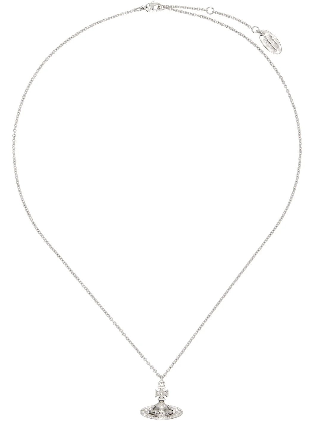 Cable chain necklace in silver-tone brass. · Logo pendant with crystals · Logo plaque at adjustable lobster-clasp fastening · L17.5" Supplier color: Platinum/Crystal Brass, crystal. Made in Thailand 252314M145041