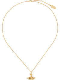 Cable chain necklace in gold-tone brass. · Logo pendant with crystals · Logo plaque at adjustable lobster-clasp fastening · L17.5" Supplier color: Gold/Crystal Brass, crystal. Made in Thailand 252314M145040