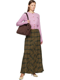 Knit virgin wool cardigan. · Rib-knit crewneck, hem, and cuffs · Button closure · Logo embroidered at chest · Cropped hem Supplier color: Pink melange 100% virgin wool. Made in Italy 252314F095011