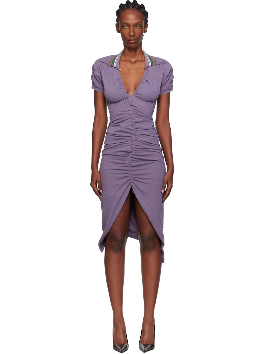 Organic cotton pique midi dress. · Rib-knit spread collar and cuffs · Keyhole with button fastening at front · Embroidered logo at chest · Central vent at front hem · Puff sleeves Supplier color: Cadet Body: 100% organic cotton. Trim: 100% cotton. Made in Turkey 252314F054005