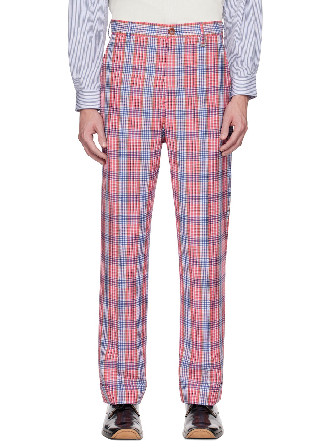 Plain-woven viscose trousers. Check pattern throughout. · Belt loops · Three-pocket styling · Button fly · Logo hardware at front waist · Rolled cuffs Supplier color: Red/Blue Body: 100% viscose. Trim: 100% cotton. Lining 1: 100% viscose. Lining 2: 100% cotton. Made in Italy 251314M191022