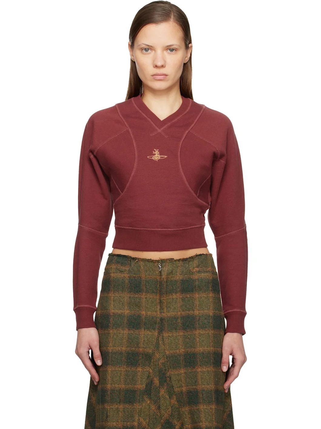 Organic cotton French terry sweatshirt. · Paneled construction · Rib-knit V-neck, hem, and cuffs · Logo embroidered at front · Cropped hem · Rib-knit gussets at dolman sleeves Supplier color: Brick Body: 100% cotton. Trim: 95% cotton, 5% elastane. Made in Turkey 252314F100000