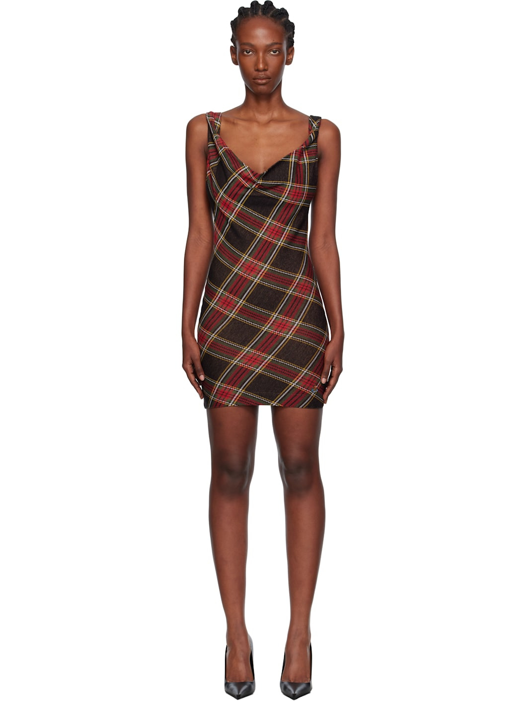 Knit organic cotton minidress. · Check pattern throughout · Cowl neck · Embroidered logo at front hem · Fixed shoulder straps Supplier color: Red/Green 100% organic cotton. Made in Turkey 252314F052001
