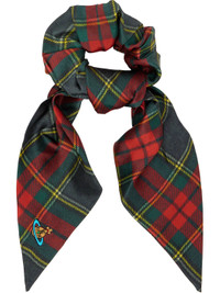 Silk twill scrunchie. · Check pattern throughout · Logo-embroidered knot at face · D4" Supplier color: Scarlet tartan 100% silk. Made in Italy 252314F018003