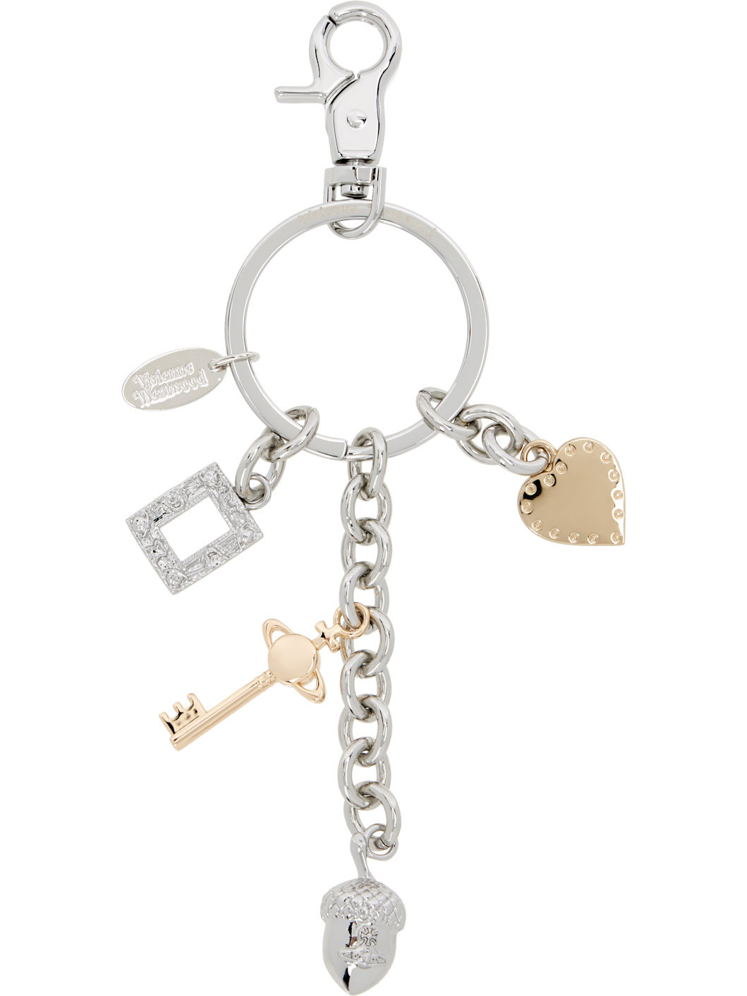 Keychain in silver tone. · Cable chains with graphic charms · Keyring and lobster clasp · Logo-engraved hardware · H5" x W3" Supplier color: Silver Metal. Made in Italy 252314F025001