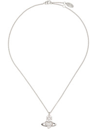 Cable chain necklace in silver-tone brass. · Logo pendant with crystals · Logo plaque at lobster-clasp fastening · L17.5" Supplier color: Platinum/White cz Brass. Made in Thailand 252314F023020
