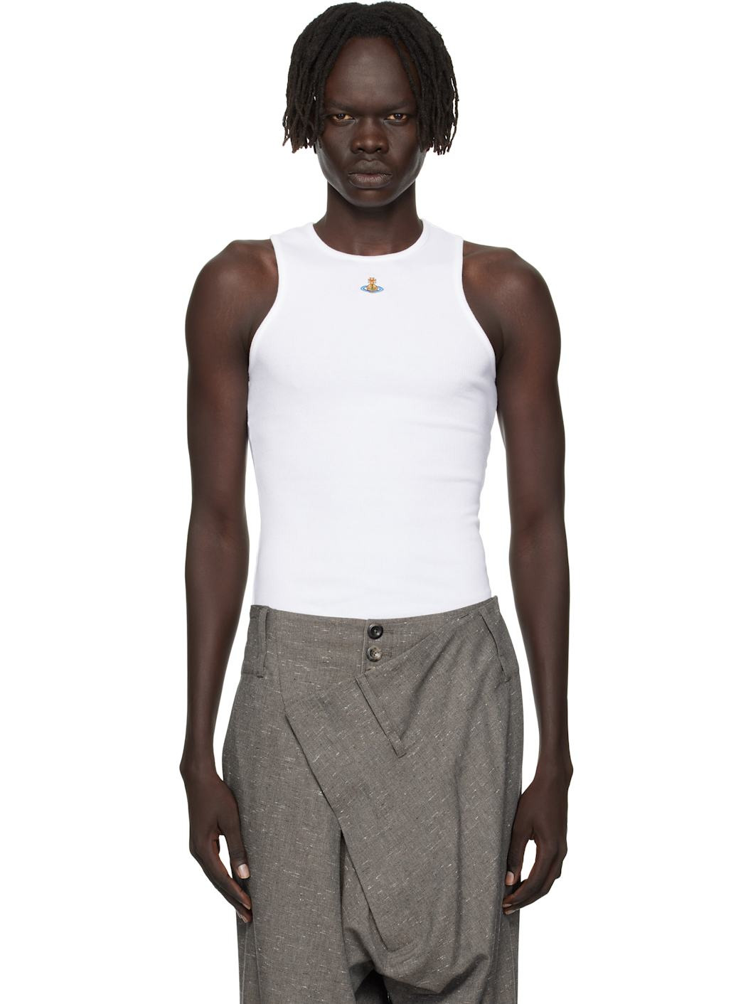 Rib-knit stretch cotton tank top. · Crewneck · Logo embroidered at chest · Curved hem Supplier color: White 95% cotton, 5% elastane. Made in Tunisia 252314M214000