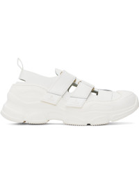 Low-top woven vegetable-tanned buffed leather sneakers in white. · Cutouts throughout · Rubber cap toe and welt · Logo-embossed velcro closure · Pull-loop at heel · Foam rubber midsole · Treaded rubber sole Supplier color: White Upper: leather. Sole: rubber. Made in Italy 251314F128001