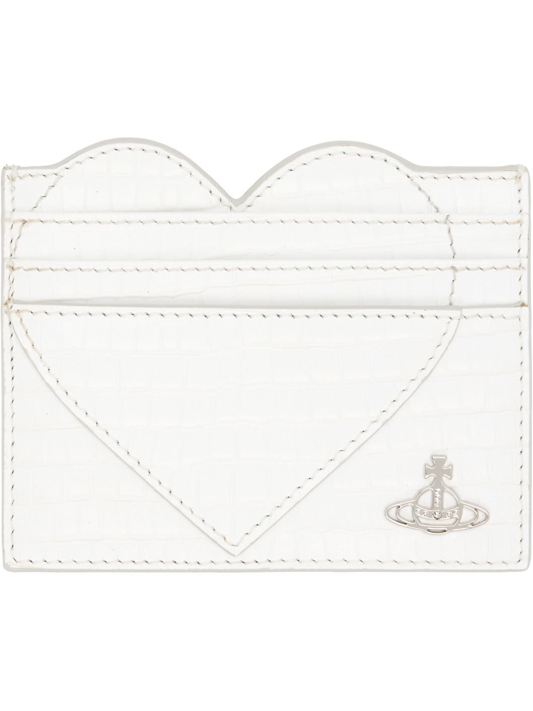 Croc-embossed leather card holder. · Heart-shaped applique · Logo hardware at face · Embossed logo at back face · Three card slots · Central note slot · Textile lining · H3.25" x W4" Supplier color: White Leather. Made in Italy 252314M163030